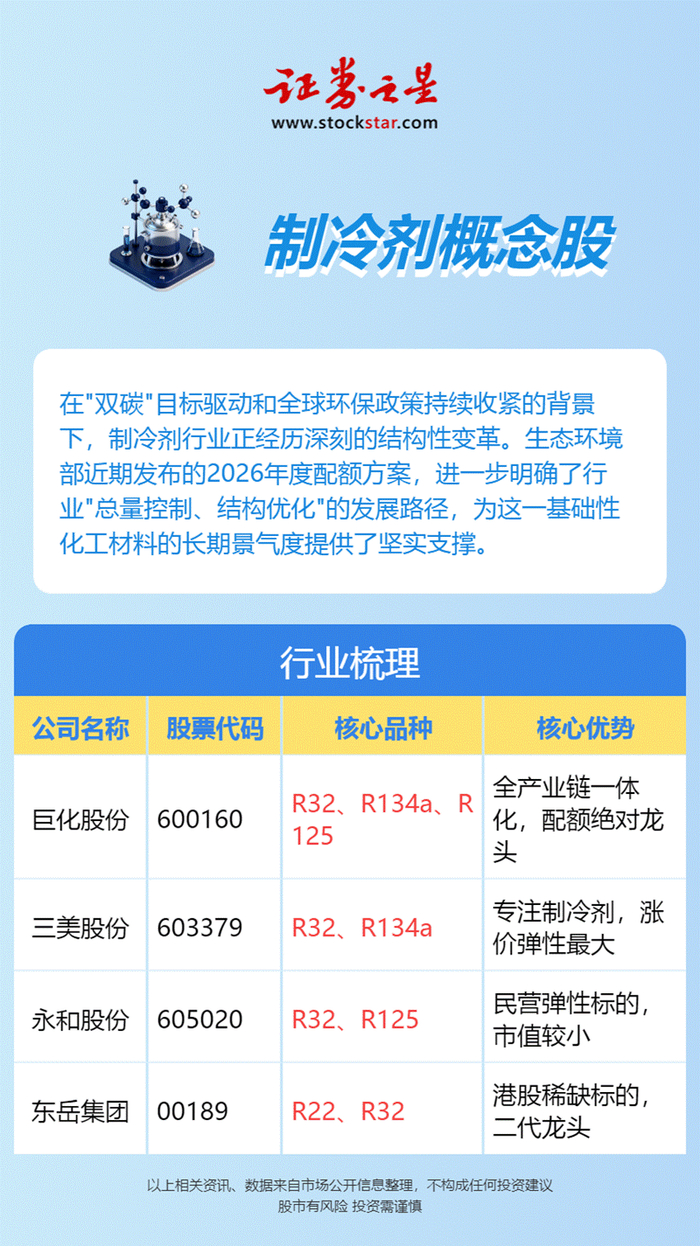 在'双碳'目标驱动和全球环保政策持续收紧的背景下,制冷剂行业正经历深刻的结构性变革。生态环境部近期发布的2026年度配额方案,进一步明确了行业'总量控制、结构优化'的发展路径,为这一基础性化工材料的长期景气度提供了坚实支撑。