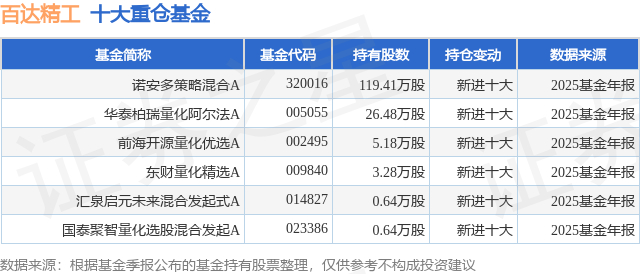重仓百达精工的公募基金请见下表: