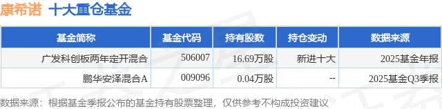 重仓康希诺的公募基金请见下表: