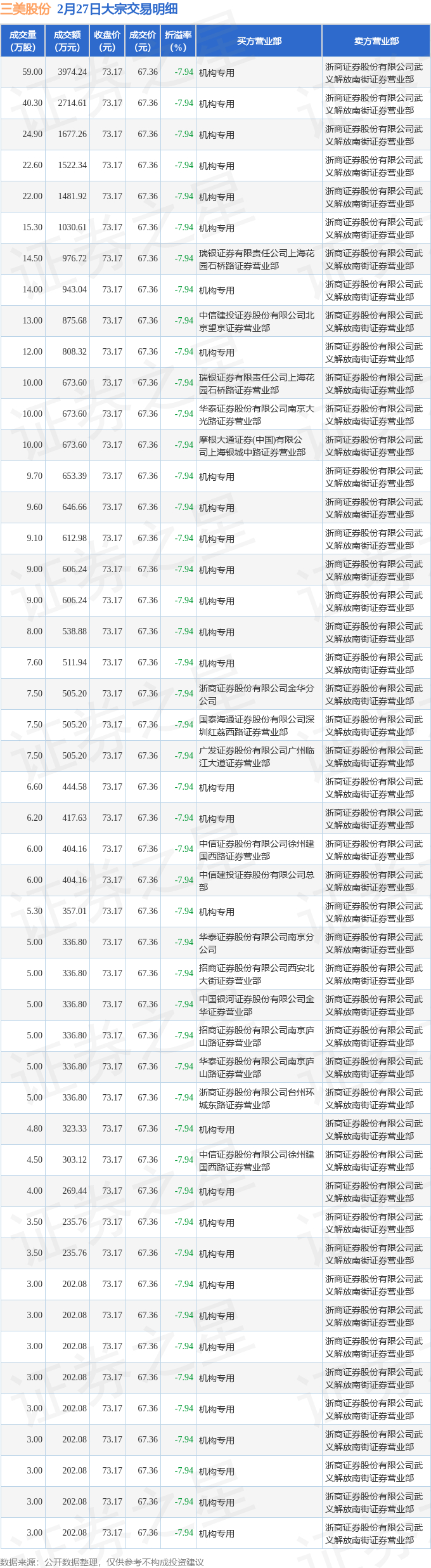 证券之星消息,2月27日三美股份发生大宗交易,交易数据如下: