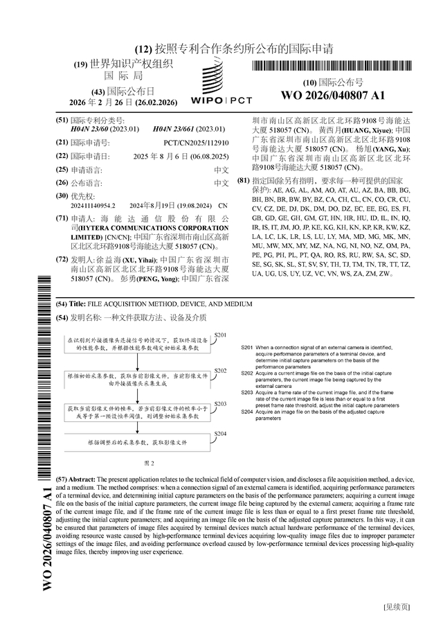 证券之星消息,根据企查查数据显示海能达(002583)公布了一项国际专利申请,专利名为“一种文件获取方法、设备及介质”,专利申请号为PCT/CN2025/112910,国际公布日为2026年2月26日。