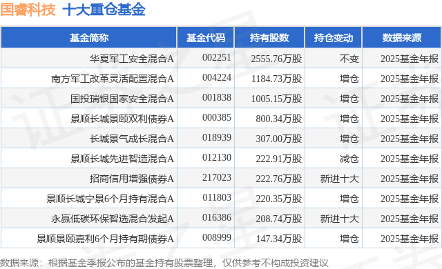 重仓国睿科技的前十大公募基金请见下表: