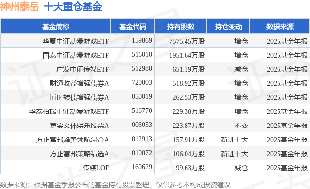 重仓神州泰岳的前十大公募基金请见下表: