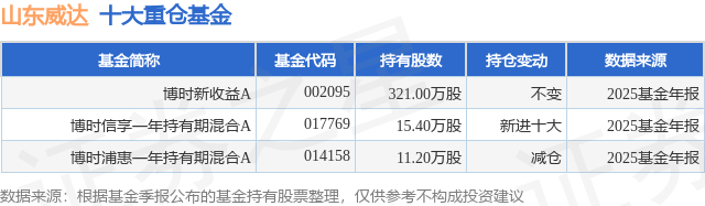 重仓山东威达的公募基金请见下表: