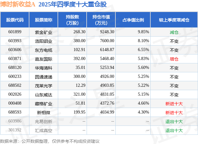 根据2025基金年报公募基金重仓股数据,重仓该股的公募基金共3家,其中持有数量最多的公募基金为博时基金的博时新收益A。博时新收益A目前规模为2.23亿元,最新净值2.0304(2月27日),较上一交易日上涨1.15%,近一年上涨88.07%。该公募基金现任基金经理为过钧。过钧在任的基金产品包括:博时信用债券A/B,管理时间为2009年6月10日至今,期间收益率为332.23%;博时双季鑫6个月持有混合A,管理时间为2021年1月20日至今,期间收益率为14.59%;博时浦惠一年持有期混合A,管理时间为2022年2月17日至今,期间收益率为33.56%。