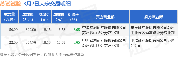 证券之星消息,3月2日苏试试验发生大宗交易,交易数据如下: