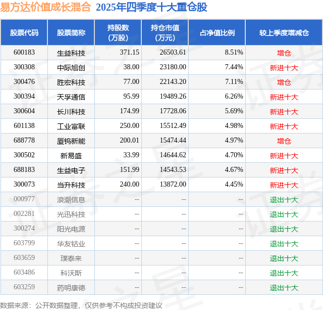 易方达价值成长混合的前十大重仓股如下: