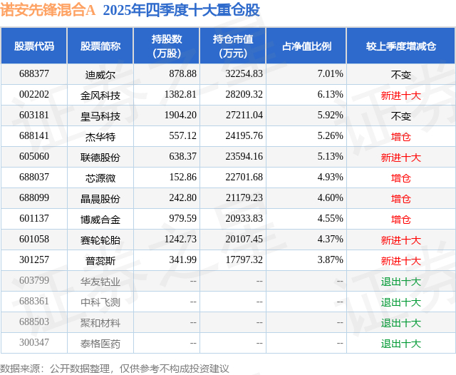 根据2025基金年报公募基金重仓股数据,重仓该股的公募基金共19家,其中持有数量最多的公募基金为诺安基金的诺安先锋混合A。诺安先锋混合A目前规模为39.14亿元,最新净值3.9164(3月2日),较上一交易日下跌1.29%,近一年上涨50.22%。该公募基金现任基金经理为杨谷。杨谷在任的基金产品包括:诺安优选回报混合A,管理时间为2023年10月21日至今,期间收益率为74.13%;诺安进取回报混合,管理时间为2024年4月13日至今,期间收益率为92.08%。
