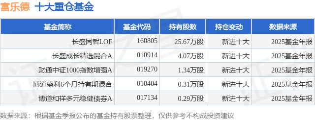 重仓富乐德的公募基金请见下表: