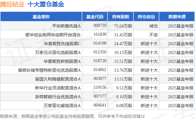 重仓腾远钴业的前十大公募基金请见下表: