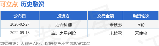 证券之星消息,根据天眼查APP于2月27日公布的信息整理,深圳可立点科技有限公司A轮融资,融资额未披露,参与投资的机构包括力合科创。
