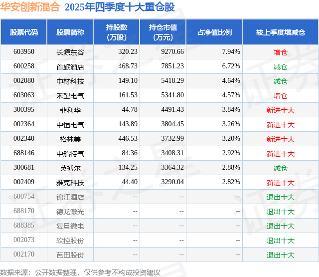根据2025基金年报公募基金重仓股数据,重仓该股的公募基金共11家,其中持有数量最多的公募基金为华安基金的华安创新混合。华安创新混合目前规模为11.68亿元,最新净值1.349(3月5日),较上一交易日下跌0.15%,近一年上涨44.08%。该公募基金现任基金经理为许瀚天。许瀚天在任的基金产品包括:华安智联混合(LOF)A,管理时间为2025年5月12日至今,期间收益率为56.57%;华安新兴动力混合发起式A,管理时间为2025年10月31日至今,期间收益率为17.39%;