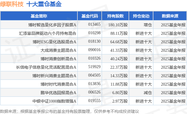 重仓绿联科技的前十大公募基金请见下表: