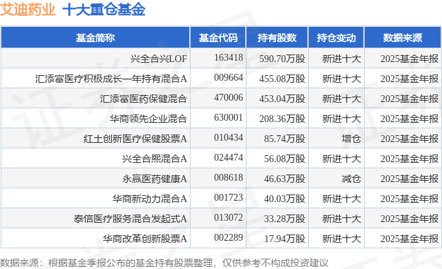重仓艾迪药业的前十大公募基金请见下表: