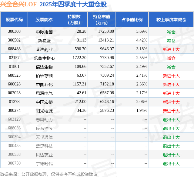 兴全合兴LOF的前十大重仓股如下:
