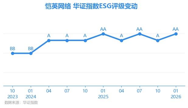 日前,华证指数公布了新一期(2026年1月31日)的ESG评级结果,恺英网络(002517.SZ)获得AA评级(华证指数评级为C起至AAA九档,C为最低档,AAA为其最高一级评级/AA为其第二档),上一期(2025年10月31日)ESG评级为A。本期ESG评级在164家软件行业A股上市公司中排名第3(上一期排名第5)。