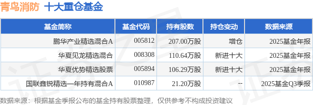 重仓青鸟消防的公募基金请见下表:
