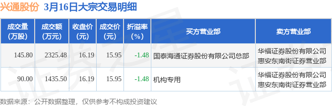 证券之星消息,3月16日兴通股份发生大宗交易,交易数据如下: