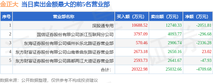 从龙虎榜公布的当日买卖数据来看,北向资金合计净卖出2051.81万元。