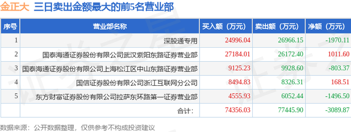 从龙虎榜公布的三日买卖数据来看,北向资金合计净卖出1970.11万元。