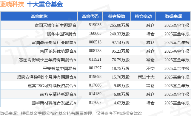 根据2025基金年报公募基金重仓股数据,重仓该股的公募基金共12家,其中持有数量最多的公募基金为富国基金的富国天博创新主题混合。富国天博创新主题混合目前规模为16.81亿元,最新净值2.2491(3月18日),较上一交易日上涨1.32%,近一年上涨28.77%。该公募基金现任基金经理为毕天宇。毕天宇在任的基金产品包括:富国高端制造行业股票A,管理时间为2014年6月20日至今,期间收益率为360.2%;富国龙头优势混合A,管理时间为2020年1月14日至今,期间收益率为46.43%;富国均衡成长三年持有期混合A,管理时间为2021年9月16日至今,期间收益率为-6.22%。