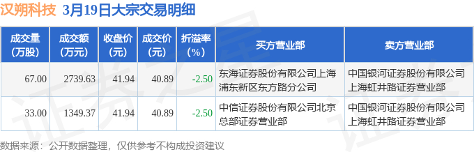 证券之星消息,3月19日汉朔科技发生大宗交易,交易数据如下: