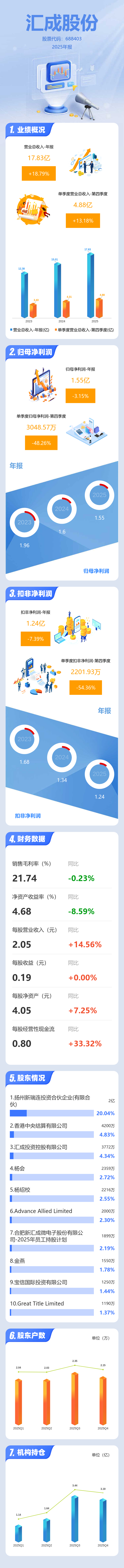 证券之星消息,汇成股份2025年年报显示,当年度公司主营收入17.83亿元,同比上升18.79%;归母净利润1.55亿元,同比下降3.15%;扣非净利润1.24亿元,同比下降7.39%;其中2025年第四季度,公司单季度主营收入4.88亿元,同比上升13.19%;单季度归母净利润3048.57万元,同比下降48.26%;单季度扣非净利润2201.93万元,同比下降54.37%;负债率27.19%,投资收益1084.2万元,财务费用3601.96万元,毛利率21.74%。