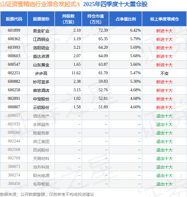 山证资管精选行业混合发起式A的前十大重仓股如下: