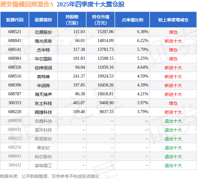 诺安稳健回报混合A的前十大重仓股如下: