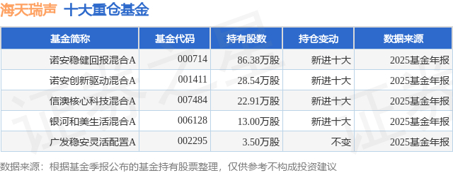 重仓海天瑞声的公募基金请见下表: