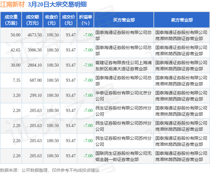 证券之星消息,3月20日江南新材发生大宗交易,交易数据如下: