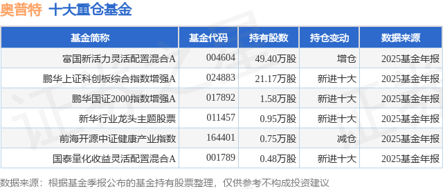 重仓奥普特的公募基金请见下表: