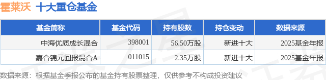 重仓霍莱沃的公募基金请见下表:
