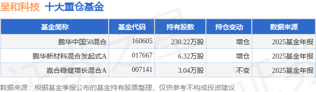重仓呈和科技的公募基金请见下表: