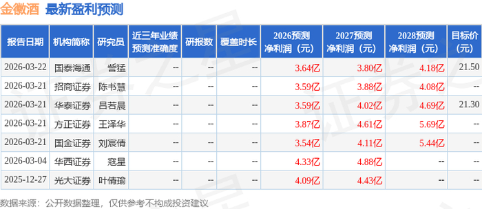 证券之星消息,2026年3月23日金徽酒(603919)发布公告称公司于2026年3月21日接受机构调研,华鑫证券、中泰证券、中信建投证券、开源证券、华福证券、西部证券、光大证券、华安证券、国联民生证券、方正证券、浙商证券、东兴证券、山西证券、天风证券、东吴证券、华西证券、广发证券、国泰海通证券、平安证券、兴证证券、信达证券、华创证券、东北证券、中银证券、国金证券、东方财富证券、国投证券、华泰证券、中金公司、招商证券、国信证券、东方证券、国盛证券、长城证券、汇添富基金、银华基金、平安基金、天弘基金、国泰基金、汇安基金、长信基金、招银理财、兴全基金、大成基金、银河证券、中加基金、汉泽基金、西部利得、建信基金、长安基金、富国基金、彤源投资、前海人寿、雪石资产、农银汇理基金、中信证券、中邮证券、申万宏源证券、西南证券参与。