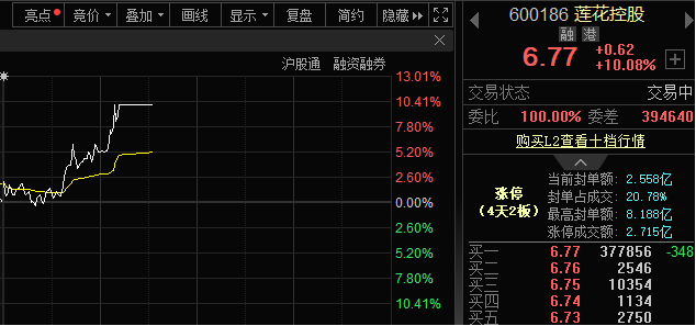 3月24日早盘,算力概念盘中震荡反弹,概念指数一度涨近2%。其中,莲花控股涨停。截至发稿,莲花控股股价报6.77元/股,涨幅10.08%,最高封单额超8亿元。