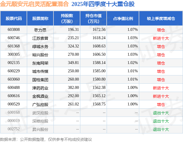 金元顺安元启灵活配置混合的前十大重仓股如下: