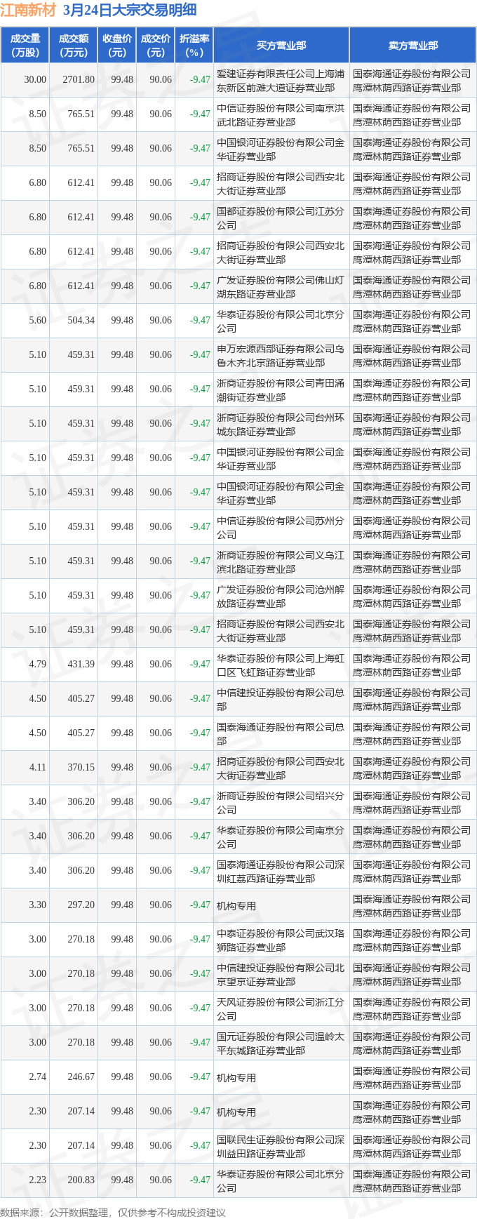证券之星消息,3月24日江南新材发生大宗交易,交易数据如下: