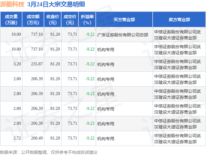 证券之星消息,3月24日派能科技发生大宗交易,交易数据如下: