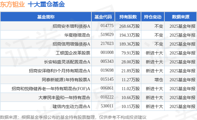 重仓东方钽业的前十大公募基金请见下表: