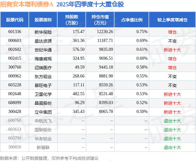 招商安本增利债券A的前十大重仓股如下: