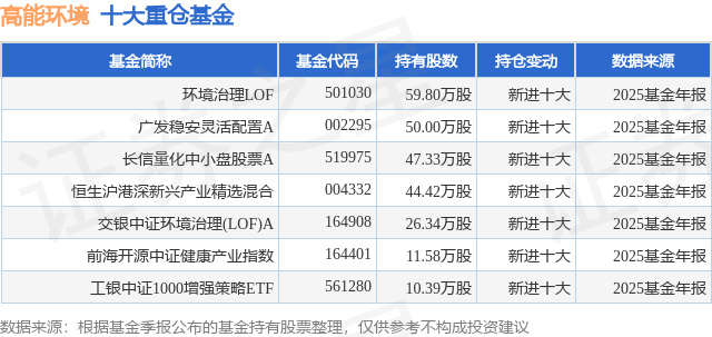 重仓高能环境的公募基金请见下表: