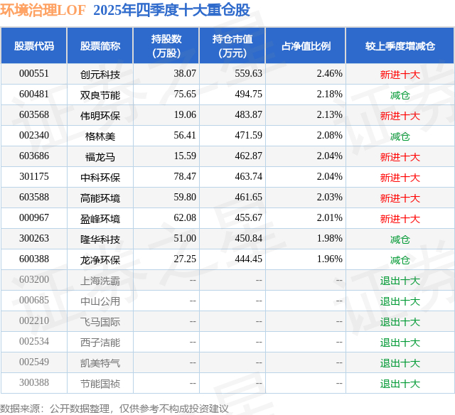 环境治理LOF的前十大重仓股如下: