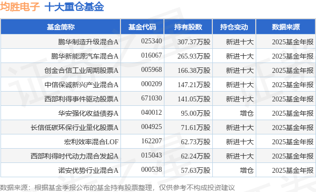 根据2025基金年报公募基金重仓股数据,重仓该股的公募基金共34家,其中持有数量最多的公募基金为鹏华基金的鹏华制造升级混合A。鹏华制造升级混合A目前规模为17.08亿元,最新净值0.8381(3月24日),较上一交易日下跌0.38%。该公募基金现任基金经理为闫思倩。闫思倩在任的基金产品包括:鹏华沪深港新兴成长混合A,管理时间为2022年5月7日至今,期间收益率为24.83%;鹏华新能源汽车混合A,管理时间为2022年7月26日至今,期间收益率为18.85%;鹏华碳中和主题混合A,管理时间为2023年5月5日至今,期间收益率为62.37%;鹏华科技驱动混合发起式A,管理时间为2024年8月29日至今,期间收益率为14.71%。