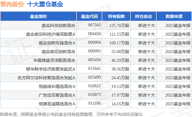重仓普冉股份的前十大公募基金请见下表:
