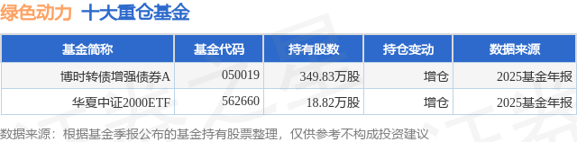 根据2025基金年报公募基金重仓股数据,重仓该股的公募基金共2家,其中持有数量最多的公募基金为博时基金的博时转债增强债券A。博时转债增强债券A目前规模为11.04亿元,最新净值2.3793(3月25日),较上一交易日上涨1.43%,近一年上涨26.83%。该公募基金现任基金经理为过钧 高晖。过钧在任的基金产品包括:博时信用债券A/B,管理时间为2009年6月10日至今,期间收益率为313.66%;博时新收益A,管理时间为2016年2月29日至今,期间收益率为224.78%;博时双季鑫6个月持有混合A,管理时间为2021年1月20日至今,期间收益率为9.94%;博时浦惠一年持有期混合A,管理时间为2022年2月17日至今,期间收益率为22.71%。高晖在任的基金产品包括:博时稳健回报债券(LOF)C,管理时间为2023年10月20日至今,期间收益率为11.72%;博时可转债ETF,管理时间为2023年10月20日至今,期间收益率为26.5%。