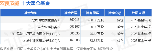 重仓双良节能的公募基金请见下表: