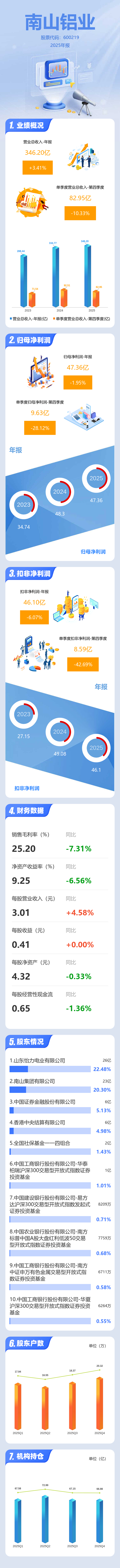 证券之星消息,南山铝业2025年年报显示,当年度公司主营收入346.2亿元,同比上升3.41%;归母净利润47.36亿元,同比下降1.96%;扣非净利润46.1亿元,同比下降6.08%;其中2025年第四季度,公司单季度主营收入82.95亿元,同比下降10.34%;单季度归母净利润9.63亿元,同比下降28.12%;单季度扣非净利润8.59亿元,同比下降42.7%;负债率19.28%,投资收益4505.91万元,财务费用-2.1亿元,毛利率25.2%。