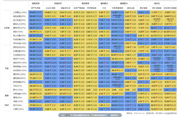 行业财务指标同比变动