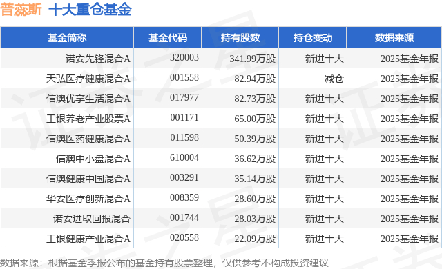 根据2025基金年报公募基金重仓股数据,重仓该股的公募基金共19家,其中持有数量最多的公募基金为诺安基金的诺安先锋混合A。诺安先锋混合A目前规模为39.14亿元,最新净值3.3941(3月26日),较上一交易日下跌1.38%,近一年上涨29.35%。该公募基金现任基金经理为杨谷。杨谷在任的基金产品包括:诺安优选回报混合A,管理时间为2023年10月21日至今,期间收益率为53.25%;诺安进取回报混合,管理时间为2024年4月13日至今,期间收益率为69.99%。